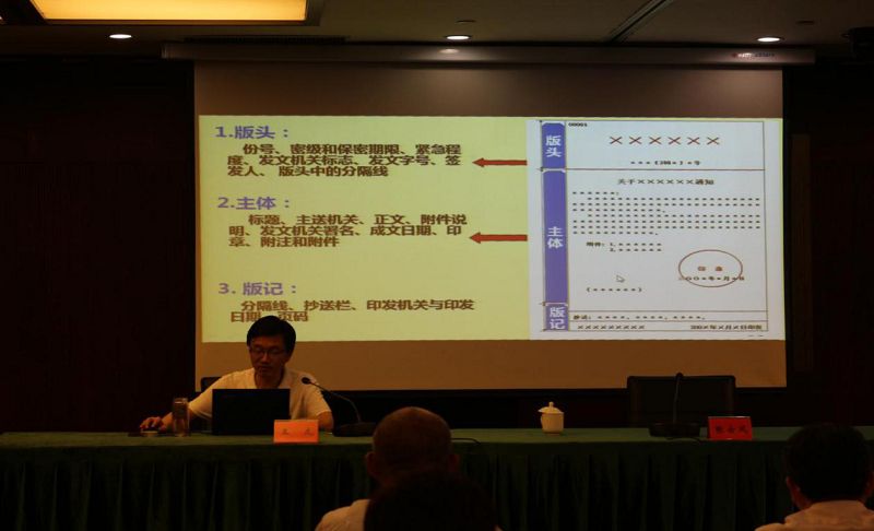 培訓(xùn)會上,市委黨校常務(wù)副校長王龍結(jié)合辦公室工作實際,以大量生動而具體的文稿案例為基礎(chǔ),對辦文、辦會、辦事中“版頭不規(guī)范、正文格式不過范、蓋章不規(guī)范、會標(biāo)不規(guī)范、接待禮儀不規(guī)范”等150種常見問題進(jìn)行了一一講解。王龍表示,細(xì)節(jié)決定成敗。大家要把簡單的事情做精細(xì),把日常的事情做精致,把服務(wù)的事情做精彩。